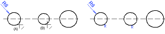 3. Select another arc or circle (B). The same radius value will be set for the two elements.