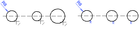 This function can be used to set the same radius value for two selected elements, arcs or circles. Before selecting the function, define the arc/circle radius that you wish to set for the other elements.