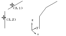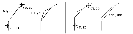 With this function, beveling is added into the intersection point of two lines or their extensions. The lines to be beveled are polylines that have been modeled on the same layer, but they need not intersect. Desired line properties can be defined for the beveled line section.