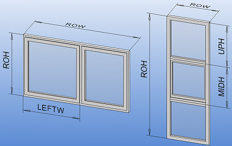 Windows can be fully variable. The basic variables are width (ROW) and height (ROH), from which all other widths and heights are calculated using dimension variable formulas.
