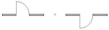The interior and exterior surfaces of opening macros are not always alike in the model, for example the interior surface of an exterior door is different from the exterior surface. When you add an opening without flipping, it is placed on the wall with its exterior surface facing outside and interior surface facing inside. When you flip the opening, you can select whether to flip its geometry only in the drawing or in the model, or in both: