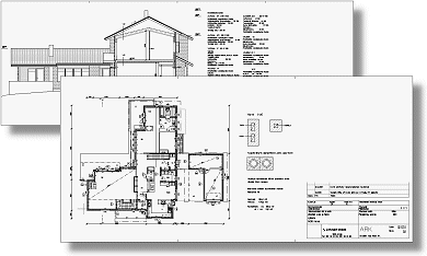 When your building model is ready, floor plan and elevation drawings can be automatically produced from the model. The program generates the drawings on custom defined template drawing sheets included in the template building you selected. The drawing title information is loaded from the system settings, building information and drawing information.
