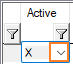 - Click the arrow on the right side of the Active field to add an X character to the field. You can clear the field by clicking the arrow again.