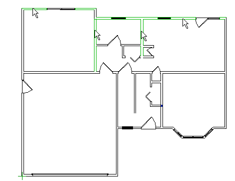 4. Select the walls to be dimensioned. In the picture below, two exterior walls and two interior walls have been selected.