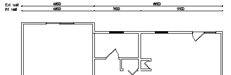 In this example, the exterior and interior walls of one side of a building are dimensioned.