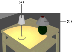 You can select two types of lamp components from the browser: with light (A) or without light (B). You can tell the difference in the rendered model:
