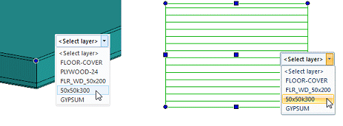 • Select the layer from a list in the floor plan drawing or in the model. The list is displayed when you click a structure, and move the cursor up and to the right from the clicking point.