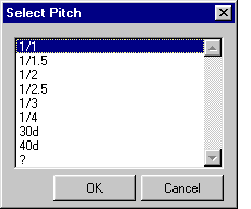 - Select a question mark (?) from the list, and type the desired pitch value in a text box. You can type the pitch as a ratio, decimal number or in degrees, e.g. 1/5 = 0.2 = 11.3d.