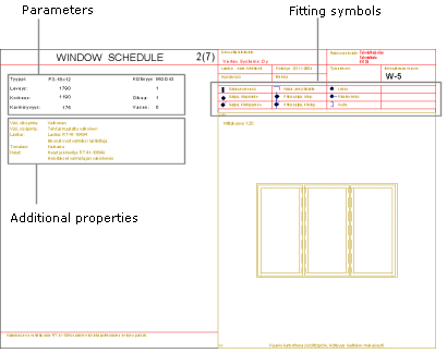 Opening sheets are created on the sheet templates defined in the settings, see Window and Door Sheet Settings. The sheet shows the following information: