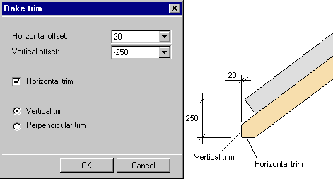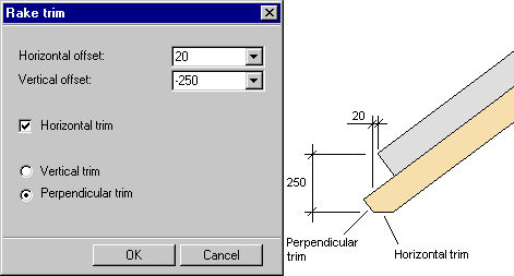 This function can be used to trim a profile to the edge of an inclined area, for example an eave.