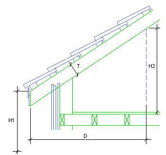 - Distance from eave to limit line, Top floor surface height, Room height on limit line, Roof thickness