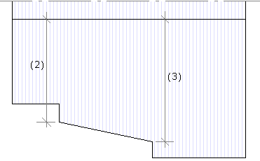 - Click the button and then click the reference eave in the drawing window. Select the eave according to which you want to determine the beam spacing. The slope length from ridge to eaves is refreshed in the Shorter dist (2) and Longer dist (3) fields. The slope length is determined in one of the following ways:
