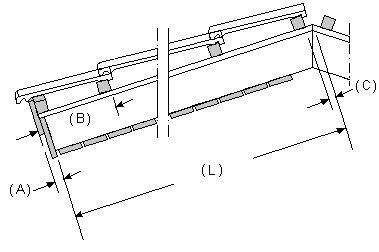 - Eave trim (A), Eave tile (B), Ridge tolerance (C)