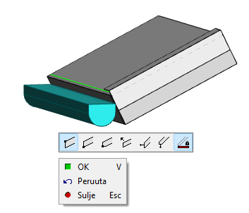 With this function, connections of trim pieces connected to an eaves are edited. The trim piece has been connected to the eaves by confining it to a certain default location and direction. This function is used to change the confining of the trim. If the eaves structure is altered at a later stage, the eaves trim is positioned on the changed eaves according to the selected connection information.