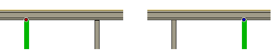 The grip point at the end of a wall is red when the end is connected to another wall. The grip point is blue when there is no connection.