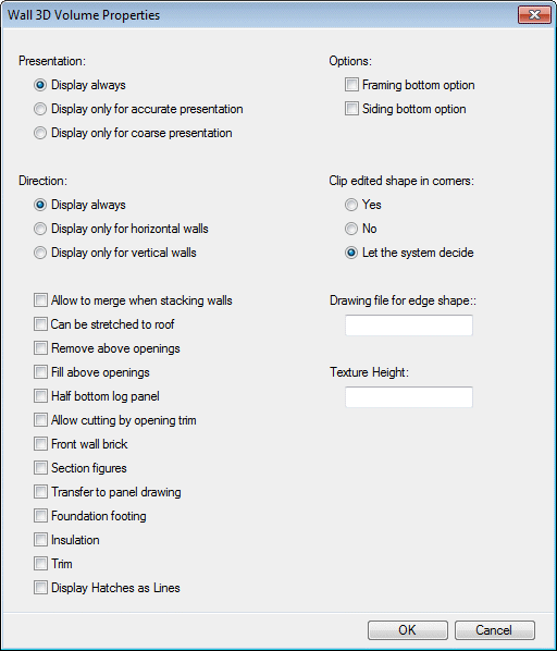 - Select one of the following as the Wall 3D Volume presentation method: