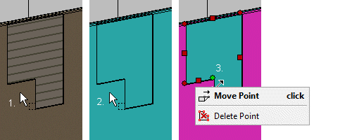 You can delete a point from the edge of a wall volume by selecting the appropriate function in the context-sensitive menu of the round grip point.