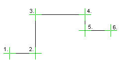 By using the continuous horizontal-vertical ruler, you can quickly add a rectangular wall chain. When you activate the ruler, the cursor locks automatically in the X axis direction. When the next point is selected, the cursor locks in the Y axis direction and then again in the X axis direction. You can select a point with the cursor or by entering its distance from the preceding point.