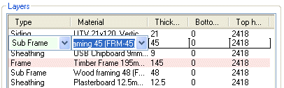 - Click a layer in the Layers list. Wall layers, from the exterior to