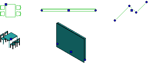 If the object is a line, wall or profile, the program will also add round grip points at the end points of the object in addition to the square grip point. You can change the length and direction of the object by moving the round end grip points.