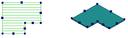If the object is an area, the round grip points are added at the mid and end points of the edge lines. You can move the edge of the area by moving the mid-point grip, or change the shape of the area by moving the corner point grips.