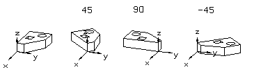 Rotate an object around the z axis to the selected angle. Type the angle in a text box. The status bar displays the change of the gamma value. Select a function from the auxiliary menu.