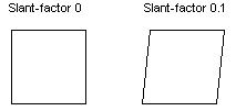 Line and macro elements may be set slanting. The slanting angle is defined by entering a slant-factor value. Decimals of the slant-factor are separated by a period (.). The default slant-factor value is 0. Type the factor before selecting element position.
