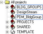 You can save a building group model in the local building archive or export it to the DesignStream system, if the DesignStream Interface add-on option is available to you. When you open a building group model for editing from a local archive, select the BLDG_GROUPS saving location in the Open Building dialog box. When you open a building group model from the DesignStream system, select the PDM_BldgGroup saving location.