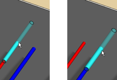 - When you move the cursor at a pipe in the model, the component is locked to move in the direction of the pipe's longitudinal axis. To detach the component from the pipe, press the Alt key and move the cursor over another pipe. The diameter of the component changes according to the pipe. The tolerance set in the component properties is added to the diameter.