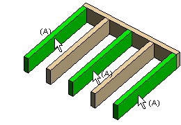 4. Select the pieces to be notched (A). Select the pieces one by one with the Ctrl key pressed or use area selection.