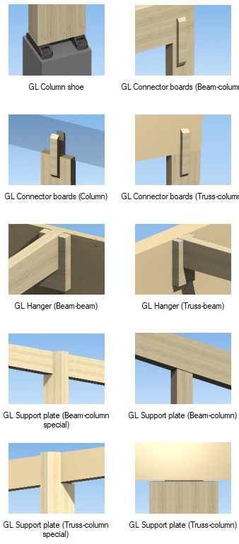 - Select the joint properties in a dialog box. For example, glulam hanger joint: