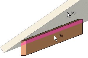 5. Select the piece (B). The program marks the cutting point with an arrow symbol. The arrow direction points the part that will be cut off.