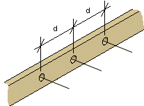 - When you add more than one line of holes, select the number of lines from the Quantity list and the spacing between the holes (d) from the Spacing list.