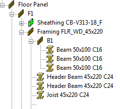 A beam panel can be a sub panel in a wall, floor, roof or truss panel. This requires that all the parts of the beam panel are connected to the panel in question. Example: