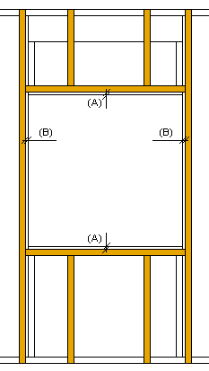 - Defines the distance of the pieces to be placed at the edges of the opening from the edges of the opening. Enter the values in the Top/Bottom (A) and Left/Right (B) fields.
