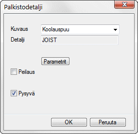 When you have clicked the location of the framing piece, select the detail in a dialog box. The details have been defined in the framing area assembly library (FRMASSY). A detail contains one or more pieces and their location information.