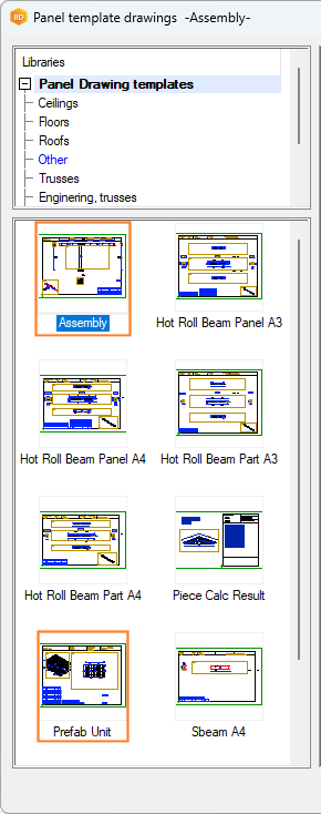 The basic delivery of the program includes a template drawing library with a ready-made template drawing for both the assembly and the prefab unit.