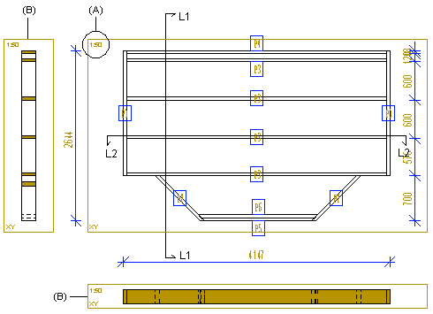 Floor, roof and wall panel drawings are created based on a template drawing in which the location and size of the views and schedules included in the panel drawing are defined. The size and default scale of the view (A) is set in a template drawing. The same scale is set as the scale of section views (B) related to the view.