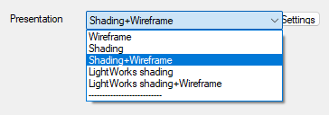 - Select Shading + Wireframe from the Presentation list, for example. When you use the Rendering add-on option, you can also choose Lightworks shading as the drawing method.