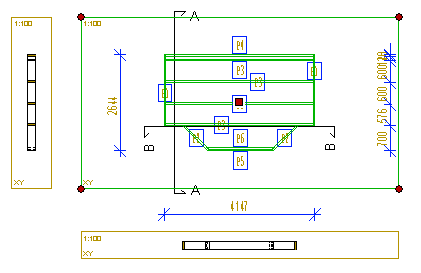 You can edit the size of the view area in a template drawing by moving its corner points by the grip points. If necessary, select a new scale for the view by editing the view properties. The section views will follow the main view when they have the property Align to Main View.