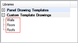 The template drawing are grouped in the library according to the selection group. Enter the desired selection group in the field, for example, the type of the panel (roof, floor, wall, truss).