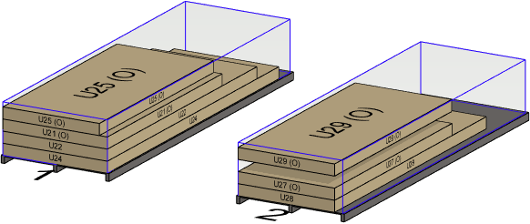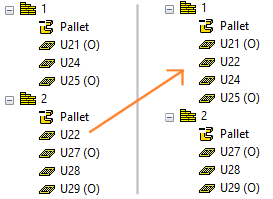 In the example below, panel U22 of stack 2 is moved to stack 1 as the second lowest, above panel U24.