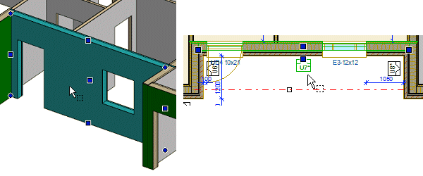 You can select a structure and a layer by clicking in the model or in the floor plan as described below, when the structure does not have parts. First, activate the model (architectural/framing) to which the geometry of the structure has been added. Floors, roofs and ceilings are usually added to the architectural model, panels to the framing model.