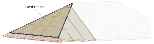 - Select the checkbox, when you want to add a layflat type truss at the hip end. Layflat truss is a triangular shaped truss that is parallel to the slope, and positioned on top of the stepdown trusses.