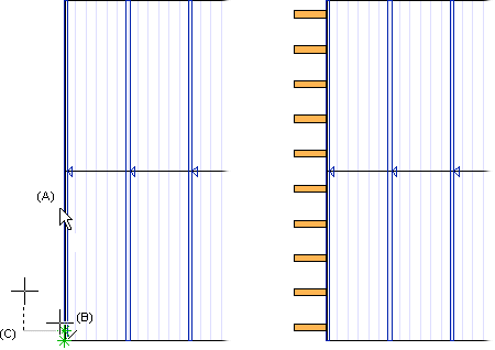 - Select the length of the rafters by clicking a point in the drawing (C).