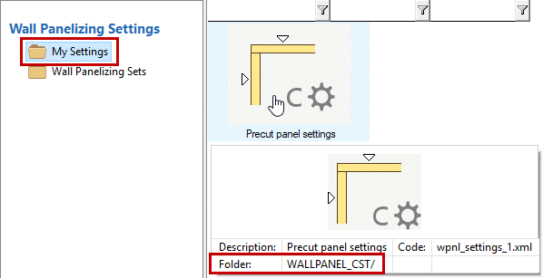 Wall Panel Settings. The browser is opened. - Do one of the following: