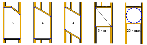 If the number of the corner points of an opening is between the minimum and maximum values, the pieces will be created according to the actual points of the opening. Otherwise, the pieces will be added around the opening in the shape of a rectangle.