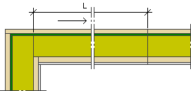 - The final length of the first wall panel is the default length + the length offset. You can define the length offset for held back and extended corners separately. Enter the desired value in the field. The value can be negative, in which case the length offset is deducted from the default length of the panel.