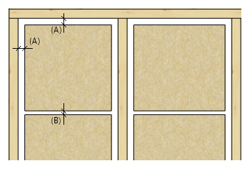 - You can define an installation gap between the insulation and the frame parts in the Edge Gap (A) field. If you selected an insulation with the length of the insulation sheet set in the insulation library, you can also define the installation gap to be left between the ends of the sheets in the Seam Gap (B) field.