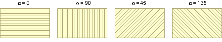 - Defines the direction of the texture hatch in a horizontal structure. Enter the desired value in the text field. The angle is defined in relation to the x axis.